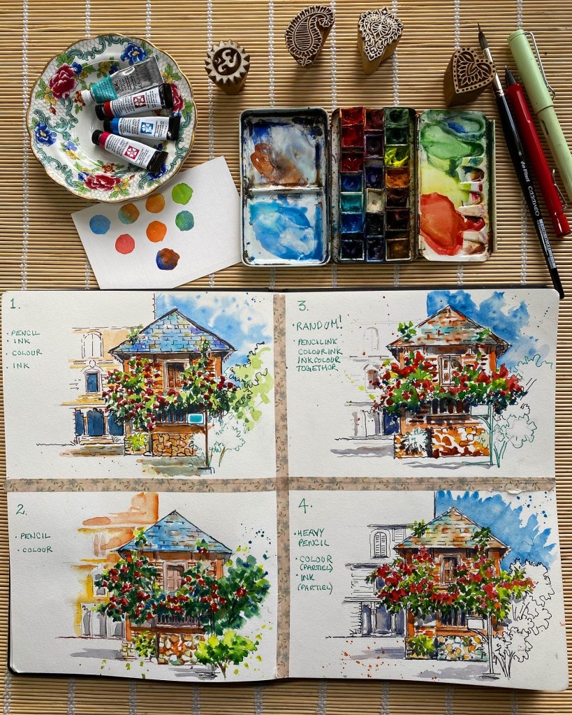 Style experiment! 1st Apr 2022 | susanknappsketches Using pencil, ink and watercolour each of the four sketches are worked in a different way The results are similar, but if you look closely not the same! Share this: Click to share on X (Opens in new window) X Click to share on Facebook (Opens in new window) Facebook Like Loading... Related