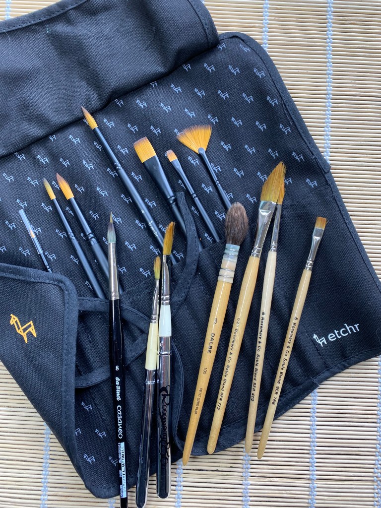 Brushes are by Rosemary & Co, and Etchr. Pens are Lamy Safari.