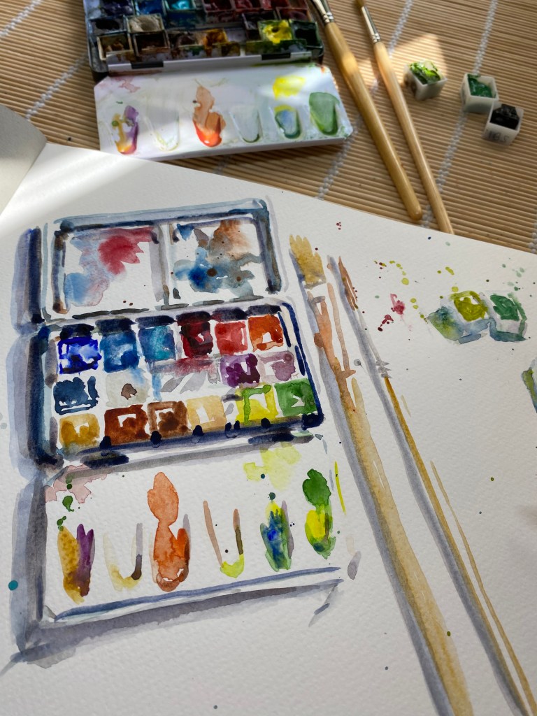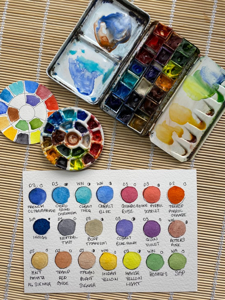 My watercolours are from Daniel Smith and Winsor and Newton. Inks are De Atramentis and Platinum Carbon Black.