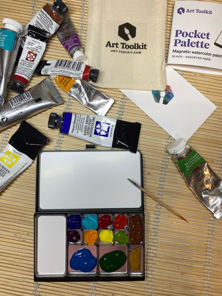 My traveling palette and case are from Art Toolkit. Home palette from Etchr. I do have an old tin palette too, but no idea where it came from!