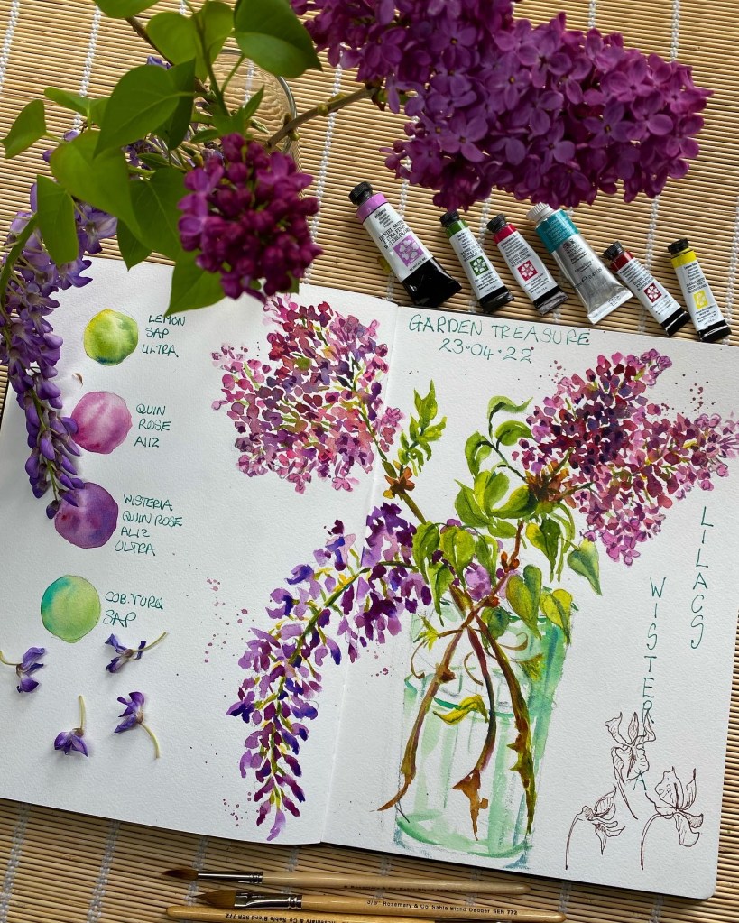 Just before moving onto a different subject, two more sketchbook pages involving flowers.