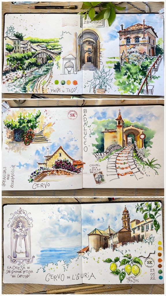 These sketches were drawn from my photographs taken whilst on the Ligurian coast in and around Alassio.